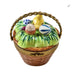 Hop into springtime charm with this delightful brown Easter basket Limoges box, complete with an adorable little chick nestled inside. Hand-painted porcelain craftsmanship brings this whimsical figurine to life with intricate details and vibrant glazing. Perfect for Easter celebrations, seasonal décor, or as a treasured collectible, this charming piece captures the joy of the holiday season. Display it proudly or gift it to someone special who appreciates fine porcelain artistry and festive flair.