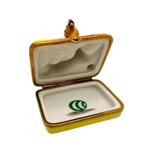 Indulge in the exquisite craftsmanship of our Dog Standing on Grass Limoges Box, a stunning porcelain figurine that beautifully captures the elega...