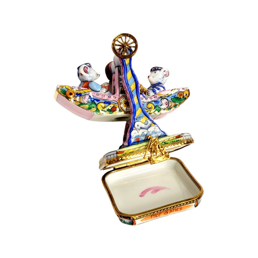 Ver todos los detallesExperience the joy of whimsy with the Mice Enjoying Carnival Ride, a captivating Limoges box that brings a festive atmosphere right into your home...