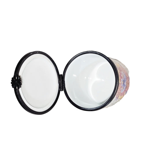 Ver todos los detallesThis long cylindrical Limoges box is an exquisite piece that showcases the intricacy and craftsmanship of Limoges porcelain. Hand-painted in rich b...