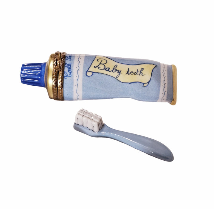 Introduce a touch of whimsy to your child's dental routine with the Blue Baby Toothpaste Treasure, a delightful Limoges box designed to inspire joy during brushing time. Perfect for celebrating childhood milestones, this charming collectible brings a playful element to any nursery.