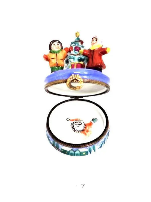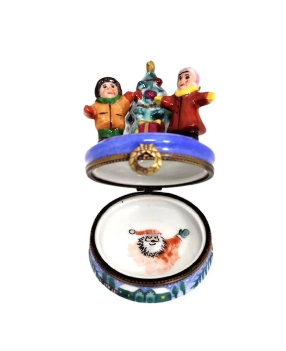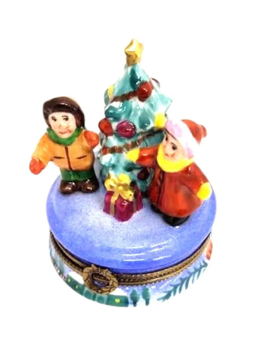 Experience the magic of the holiday season with the Children's Christmas Morning Joy Limoges porcelain box, perfectly designed to ignite the spirit of joy and wonder in any festive celebration. This delightful piece captures the essence of childhood anticipation as two charming children gather around a beautifully adorned Christmas tree.