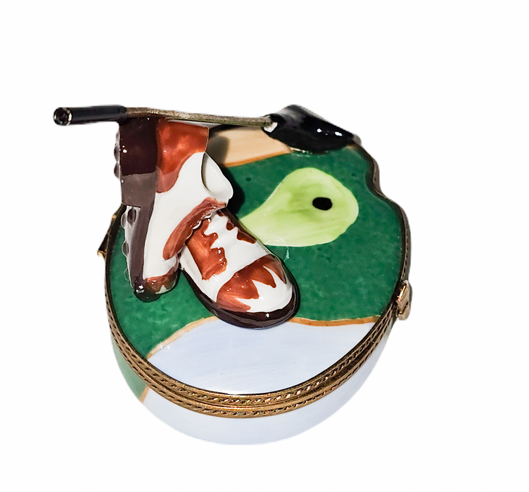 Discover the exquisite artistry of our Golf Shoes and Club Collectible, a stunning Limoges Box that beautifully captures the spirit of golf, making it a perfect addition to any avid golfer's memorabilia.