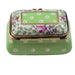 Discover the charm of this delightful light green Limoges box, adorned with shimmering gold dots that catch the light beautifully. Perfect for storing jewelry, trinkets, or treasures, this small rectangular porcelain figurine brings a touch of whimsy to any shelf or vanity. Handcrafted with the timeless elegance Limoges is famous for, it's an ideal gift for collectors or anyone who appreciates fine porcelain artistry. A playful yet sophisticated addition to your décor!
