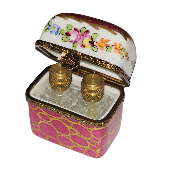 Indulge your senses with the exquisite Maroon Floral Perfume Treasure, a stunning Limoges box that not only houses two elegant fragrances but also serves as a captivating decorative piece for any space. This artisan-crafted treasure is perfect for scent collectors and those who appreciate luxury home decor.