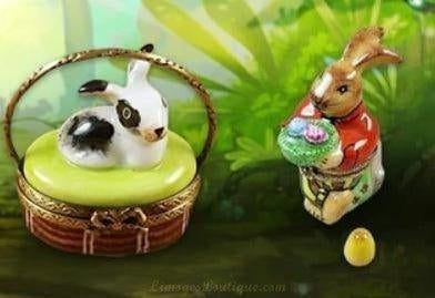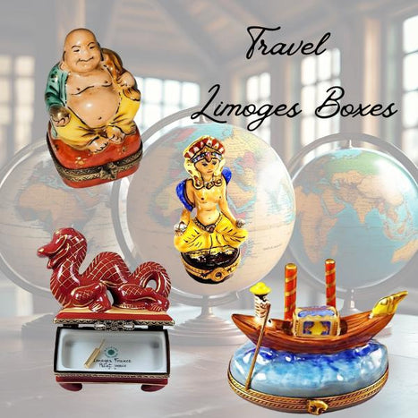 Our expansive collection is truly impressive, ensuring there's a perfect Limoges Trinket Box for everyone, catering to a wide range of preferences. Our collections span various themes, including Holidays, Animals, Sports, Food & Beverage, Travel & Leisure, Baby Showers, Weddings, and Anniversaries. We proudly showcase Limoges boxes from some of the most renowned brands such as Gr, Pv, Limoges Imports, Artoria, Rochard, and Chamart. There really is a Limoges box for every individual's taste.