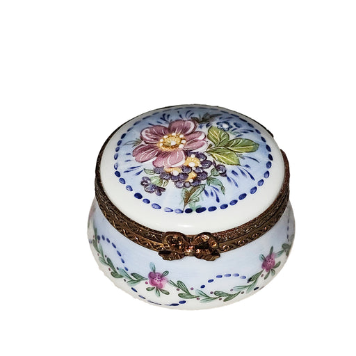 Afficher tous les détailsCelebrate your sister with this charming round Limoges box, a delightful keepsake perfect for storing treasures or displaying on a shelf. Hand-pain...