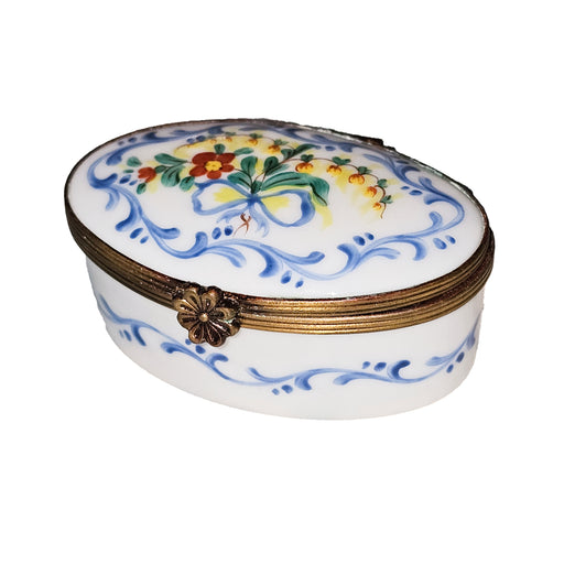 Afficher tous les détailsIntroducing the Mini Oval Blue Gold Limoges Box, a stunning piece that combines artistry with functionality, perfect for adding a touch of eleganc...