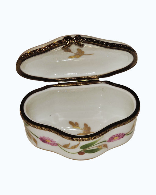 Afficher tous les détailsDiscover the exquisite charm of our Pink Flower Gold on Heart Limoges box! This stunning piece captures the essence of elegance with its delicate d...
