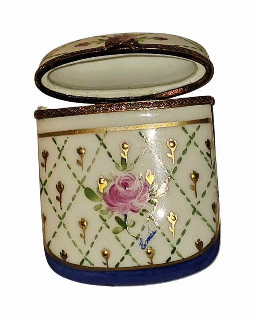 Afficher tous les détailsDiscover the exquisite beauty of the Pink Floral Striped Limoges Box, a captivating piece that seamlessly blends elegance and functionality, perfe...