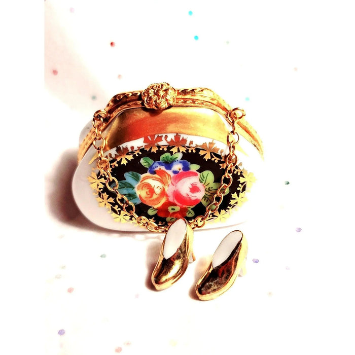 Discover the exquisite Antique Orange Floral Purse Box, a captivating Limoges box that embodies timeless elegance and artistry, making it the perfect decorative piece for your collection or a thoughtful gift. This authentic piece from France beautifully replicates a vintage purse, adorned with a stunning antique floral pattern in vibrant shades of orange.
