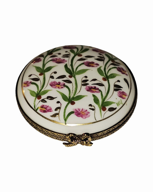 Afficher tous les détailsExperience the beauty of craftsmanship with the Small Round Pink Limoges Box with Flowers and Ornate Brass by Rochard. This stunning piece not onl...