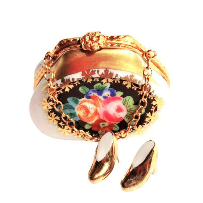 Discover the exquisite Antique Orange Floral Purse Box, a captivating Limoges box that embodies timeless elegance and artistry, making it the perfect decorative piece for your collection or a thoughtful gift. This authentic piece from France beautifully replicates a vintage purse, adorned with a stunning antique floral pattern in vibrant shades of orange.