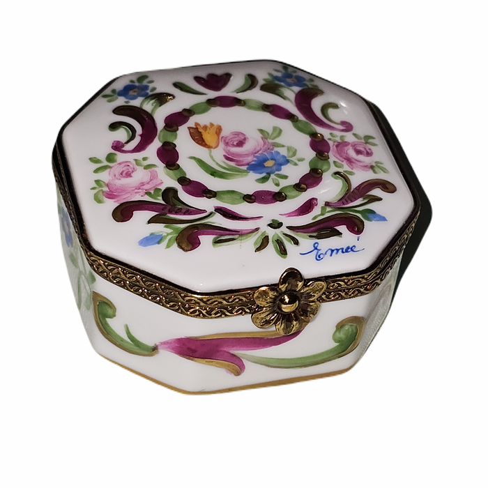 White Floral Hexa Square Limoges Box for Elegant Gifting