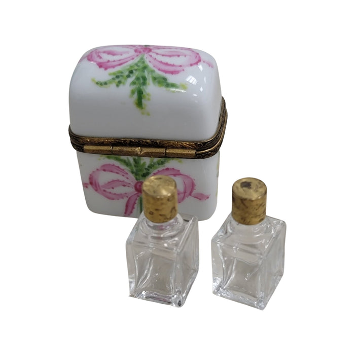 - Elegant Storage: Features two delicately crafted glass perfume bottles, perfect for storing your favorite fragrances.