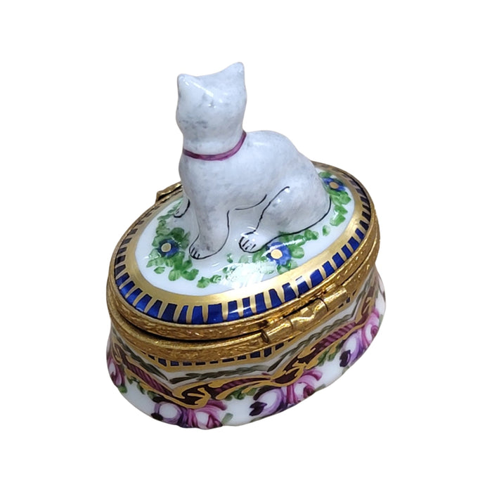 Discover the charm of the Cat Figurine on Floral Base, a stunning Limoges Box that adds a touch of elegance to any space. This exquisite porcelain piece is perfect for cat lovers and collectors alike, showcasing your passion in a beautifully crafted design.