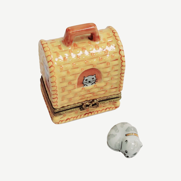 Introducing the Black Cat Carrier Figurine, a delightful piece that brings a touch of elegance and charm to any cat lover's home. This exquisite Limoges box, handcrafted in France, is a must-have collectible that celebrates your love for felines in a truly unique way.