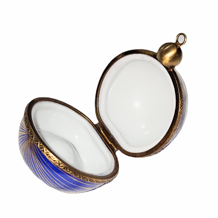 Unsigned Elegant Blue Christmas Limoges Ornament