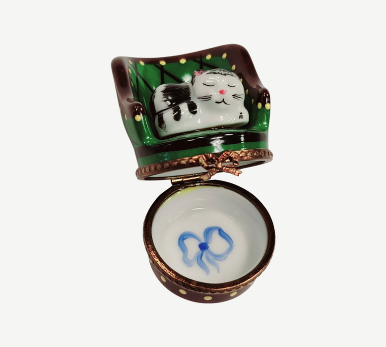 Discover the charming Cat in Green Chair Limoges Box, a delightful addition that brings a touch of whimsy and elegance to any home decor. This exquisite porcelain figurine is perfect for cat lovers and collectors alike, ensuring a delightful focal point in your collection.