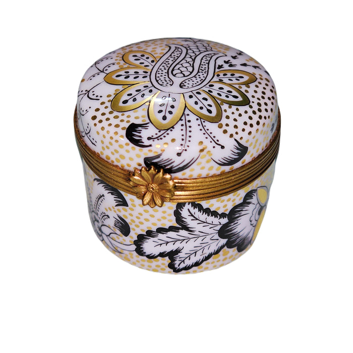 Elegant Gold Black Pizazz Tall Round Limoges Box