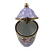 This charming Limoges box features a delicate light purple finish adorned with shimmering gold dots, topped with a gracefully arched lid. Perfect for storing jewelry, trinkets, or treasured keepsakes, this hand-painted porcelain piece brings a touch of French elegance to any room. The elevated lid design adds sophisticated flair while keeping your precious items safely tucked away. A whimsical yet refined addition to your collection!