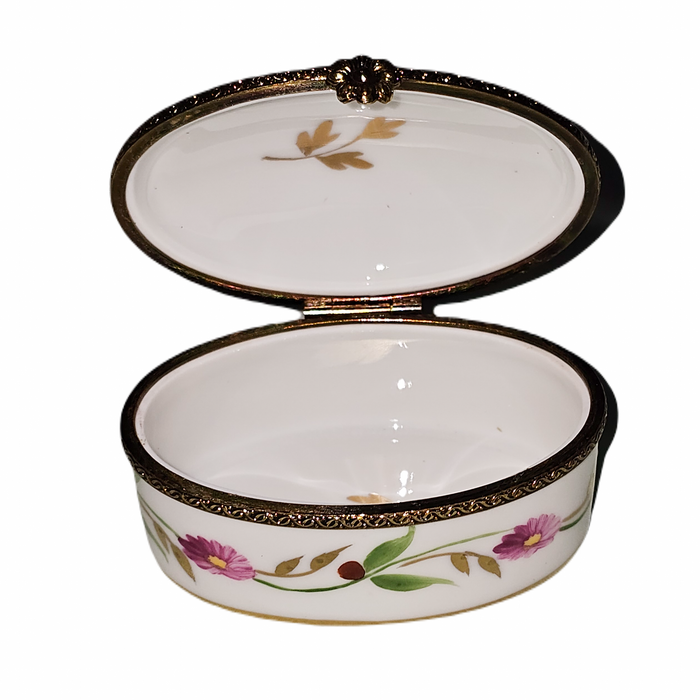 This beautifully crafted Limoges box features intricate floral designs that dance across its surface, showcasing a vivid palette that brings warmth and sophistication to any space. Each box is a testament to quality craftsmanship, ensuring that it not only serves as a decorative accent but also as a timeless collectible.