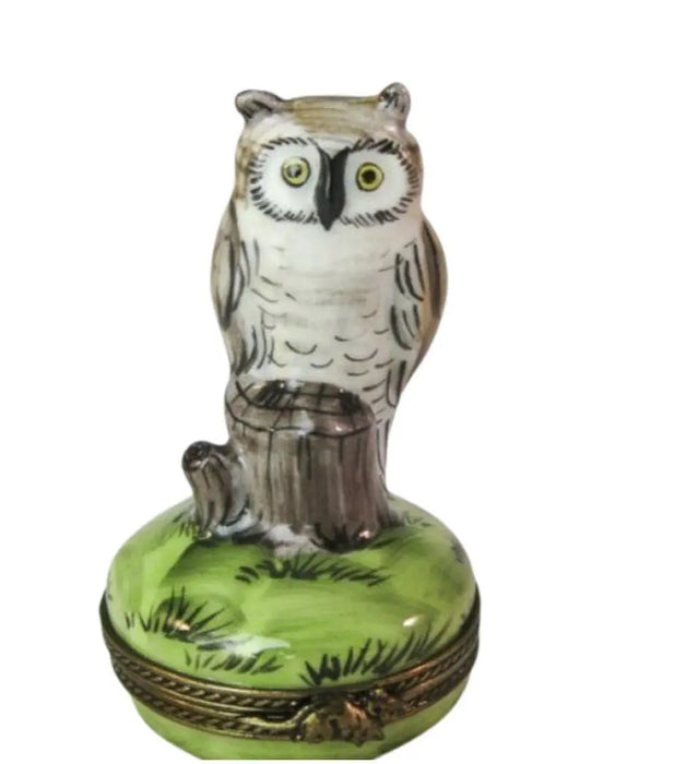 Owls on Stump Limoges Box for Collectors