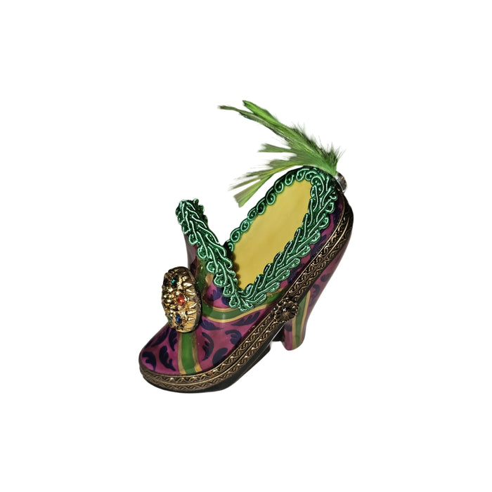 Step into a realm of sophistication with the Pink Elegance Shoe Box, a captivating Limoges box that embodies elegance and charm, making it the perfect decorative accent for any fashion lover. This exquisite piece is not just a box; it's a statement of style and whimsy.