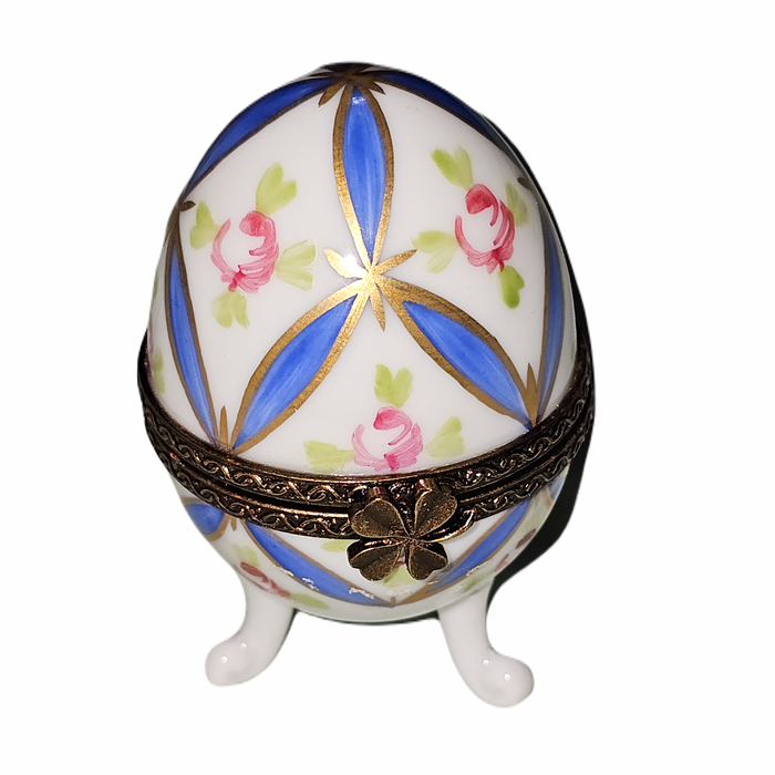 Blue Floral Limoges Egg Footed for Elegant Gifting