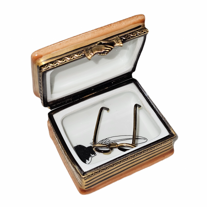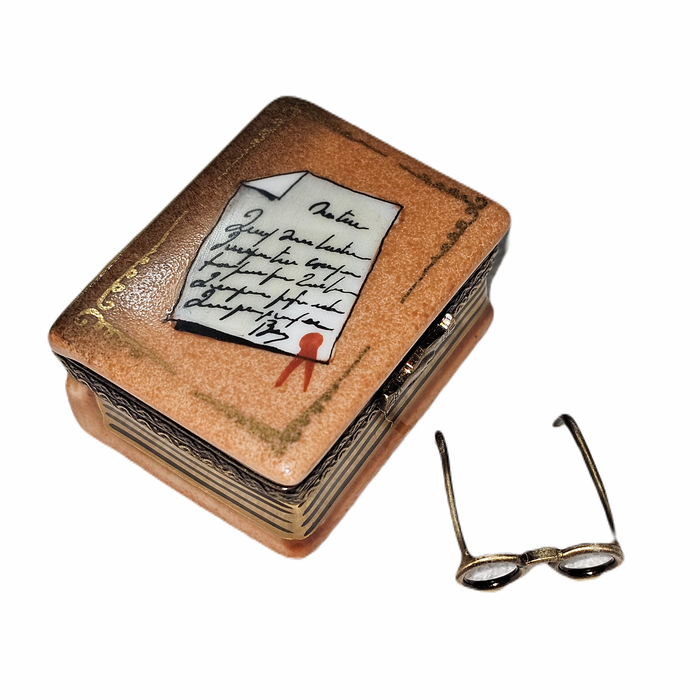 Discover the exquisite charm of the Book and Copper Glasses Delight, a delightful Limoges box that seamlessly blends artistry with functionality, making it the perfect decorative accent for book lovers. This enchanting piece showcases a detailed book design adorned with a beautifully painted letter and elegant copper glasses, adding a touch of elegance to any collection.