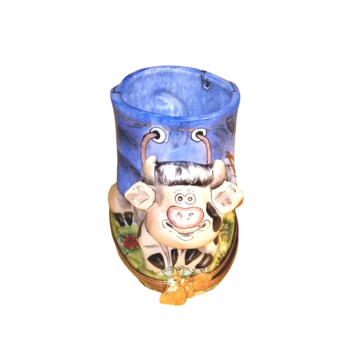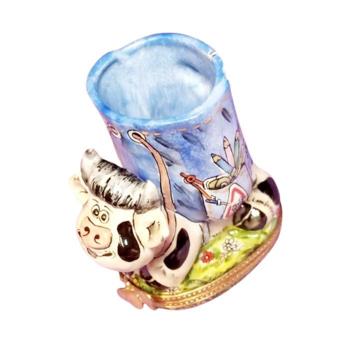 Introducing the Cow Vase Pencil Holder Artistry, a stunning fusion of artistic elegance and practical utility, crafted by the renowned artisans of Limoges, France. This exquisite piece stands out as a unique addition to your workspace, serving not only as a pencil holder but also as a charming decorative accent that brightens any environment.