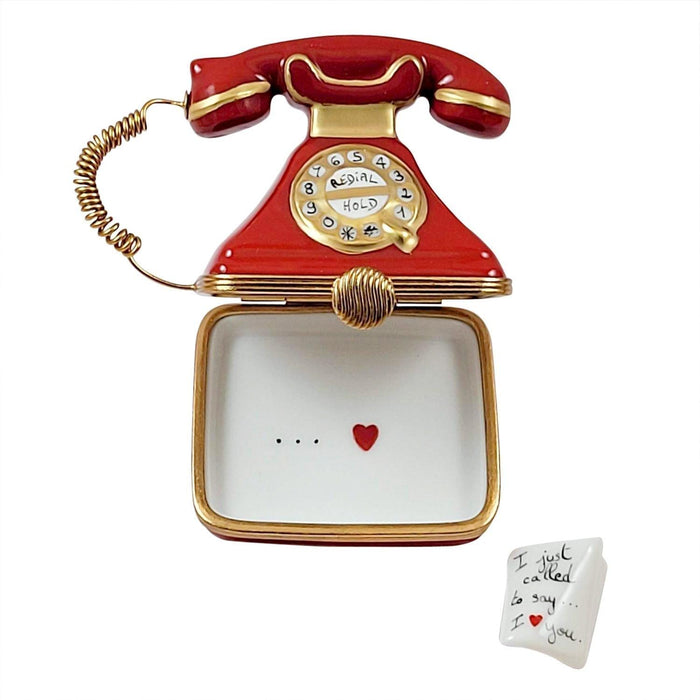 Discover the enchanting charm of the Red Telephone with Called to Say I Love You Limoges box by the esteemed Rochard Brand. This exquisite piece beautifully encapsulates nostalgia and romance, making it a perfect decorative item for expressing heartfelt emotions.