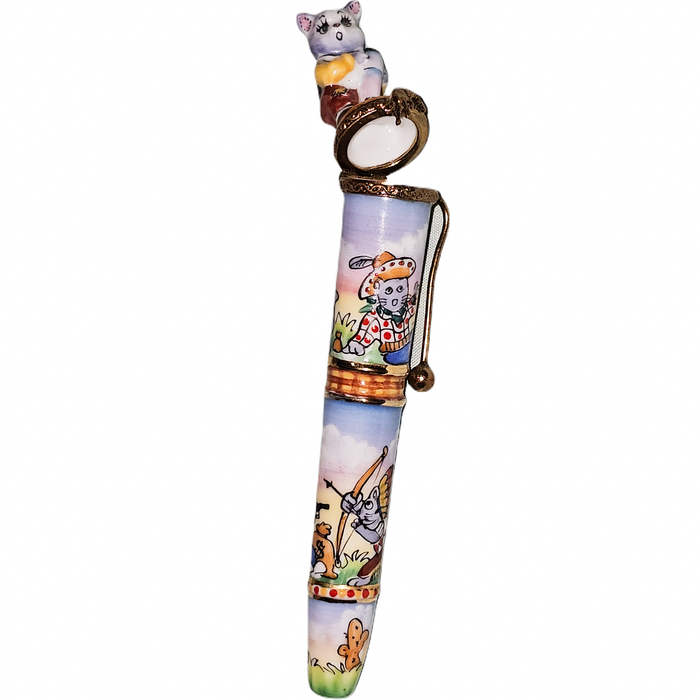 Introducing the Whimsical Mouse Figurine Pen, a delightful writing instrument designed to bring joy to every word you write. This exquisite pen is perfect for animal lovers and whimsical collectors, making it a charming addition to any desk.